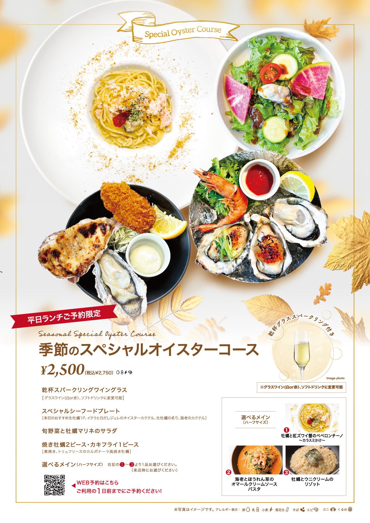【店舗限定フェア】ご予約・平日ランチ限定 季節のスペシャルオイスターコース
