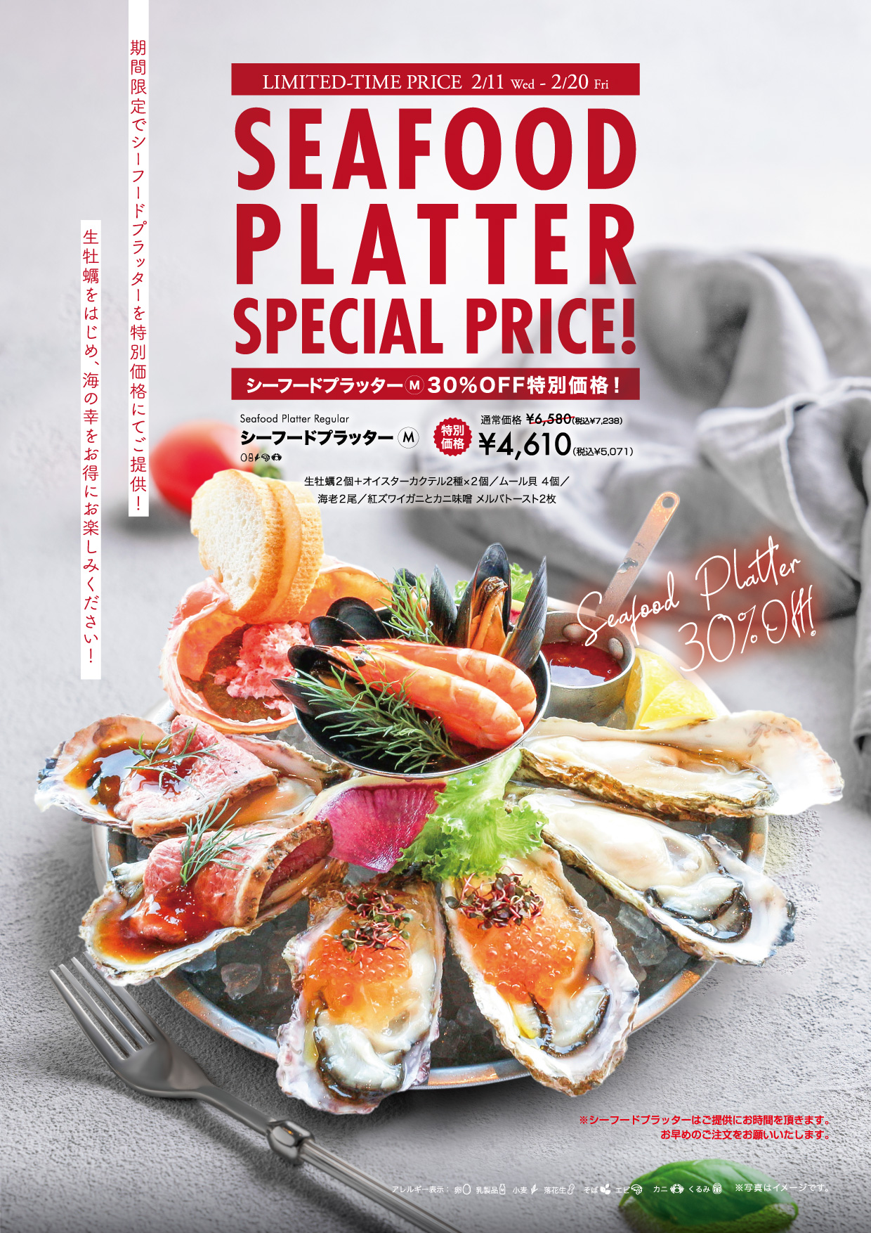 大好評シーフードプラッター30%OFF!